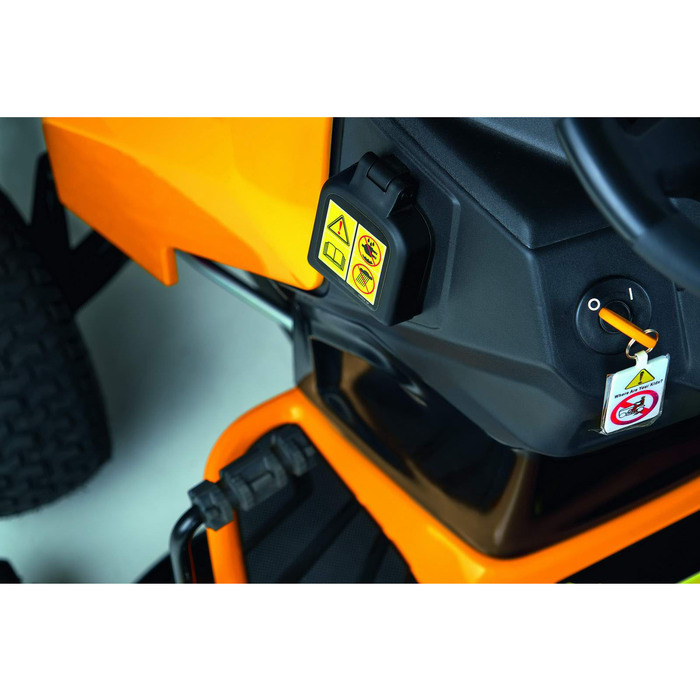 Mit dem XT2 ES107 setzt Cub Cadet die innovative E-Mobilität auch bei einem Rasentraktor um. Ein leistungsstarker 56V-Motor mit 60 Ah sorgt für eine vergleichbare Power wie bei den Benzinmotoren. Gleichzeitig überzeugt das Gerät durch seinen geräuscharmen und emissionsfreien Betrieb und eine geringe Wartungsintensität. Abhängig von der Boden- und Rasenbeschaffenheit liegt die Laufzeit bei rund 90 Minuten, bevor Sie den Akku in nur vier Stunden wieder vollständig aufladen. Dank der großzügigen Schnittbreite von 107 cm und einem äußerst geringen Wendekreis von nur 17 cm mähen sie dabei bis zu 8.000 m² je Stunde, sodass sich mit einer Akkuladung auch große Flächen effizient bearbeiten lassen. Das Mähwerk schalten Sie dabei komfortabel elektrisch ein, wobei die Wahl zwischen 12 Schnittpositionen (25 bis 100 mm) besteht. Mit einem optional erhältlichen Mulchkit oder einem 200l-Fangsack lässt sich die Effizienz des Arbeitens zusätzlich steigern. Selbstverständlich verfügt der Rasenroboter zudem über Komfortmerkmale wie einen hohen Deluxe-Sitz mit Sitzverstellung, ein ergonomisch geformtes Lenkrad sowie einen Becherhalter und USB-Post, um Ihnen die Gartenarbeit so bequem wie möglich zu machen.