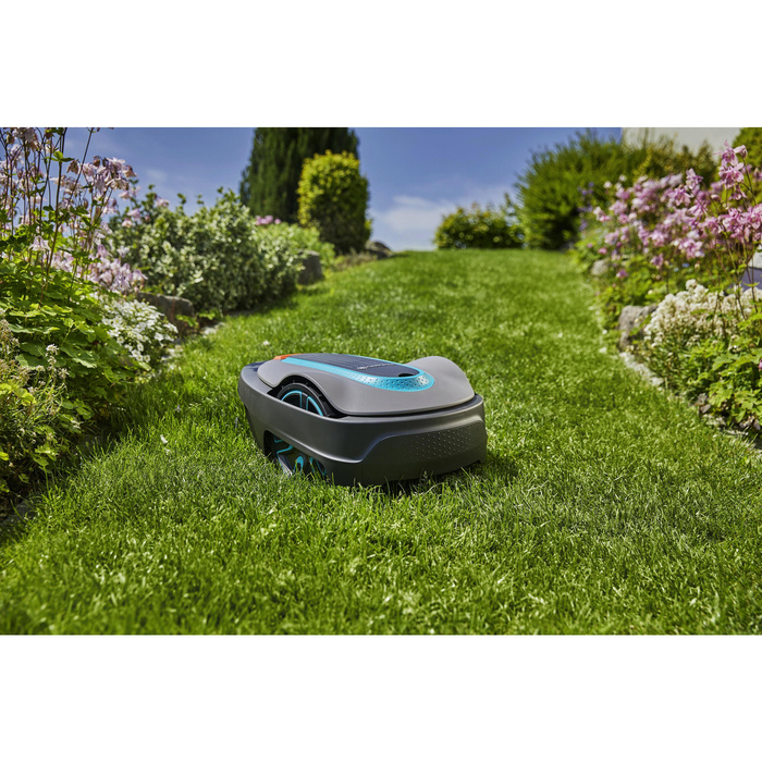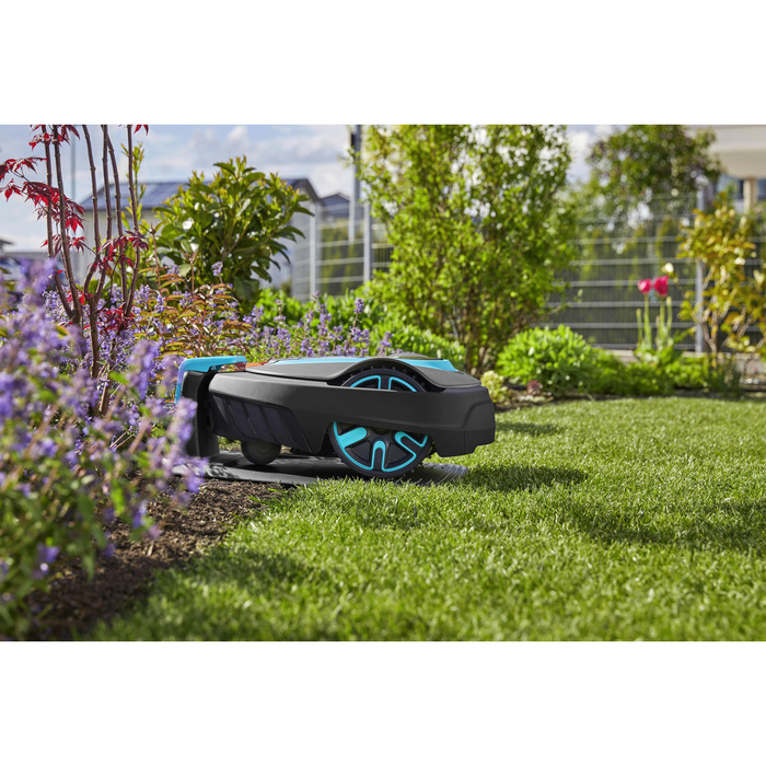 Der GARDENA SILENO City Mähroboter mit Bluetooth®-Steuerung vereinfacht das Rasenmähen in kleineren Gärten mit einer Fläche von bis zu 600 m².